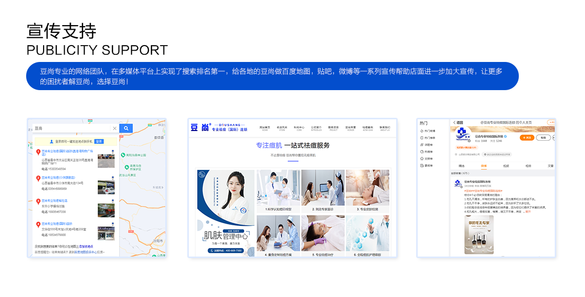 廣州豆尚生物科技有限公司致力于專(zhuān)業(yè)祛痘,是一家集祛痘相關(guān)產(chǎn)品的研制、生產(chǎn)、銷(xiāo)售、服務(wù)、培訓(xùn)以及加盟連鎖于一體的綜合性化妝品企業(yè),旗下“豆尚”品牌以回歸自然的東方哲學(xué)理論為基礎(chǔ),以草本植物為媒,激活肌膚生命力,回歸純凈至美的理念。提取植物精華,針對(duì)問(wèn)題性肌膚特點(diǎn)和肌膚問(wèn)題,進(jìn)行科學(xué)配比,結(jié)合現(xiàn)代先進(jìn)融合工藝研發(fā)生產(chǎn),推出全新健康護(hù)膚產(chǎn)品,從根本上解決肌膚問(wèn)題。